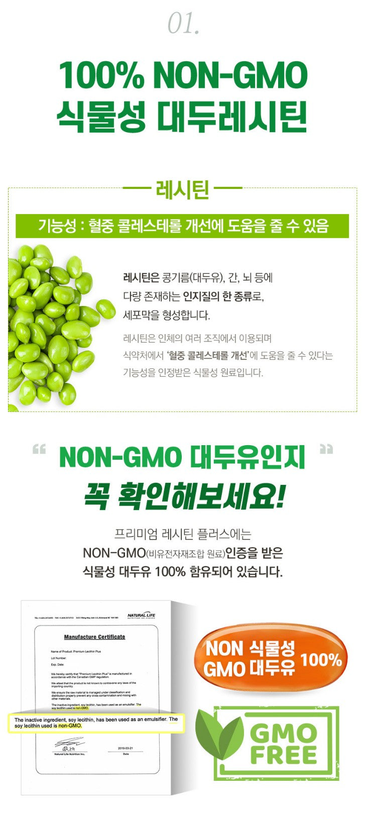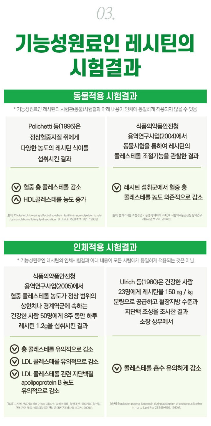 Lecithin is a botanical raw material that is used in various tissues of the human body and has been recognized by the Ministry of Food and Drug Safety for its ability to help 'improving blood cholesterol'.