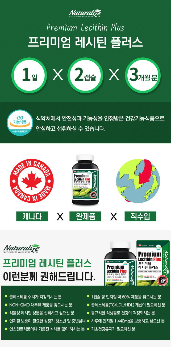 Naturalize Premium Lecithin Plus 180 Capsules Health Supplements Cholesterol Vitamin