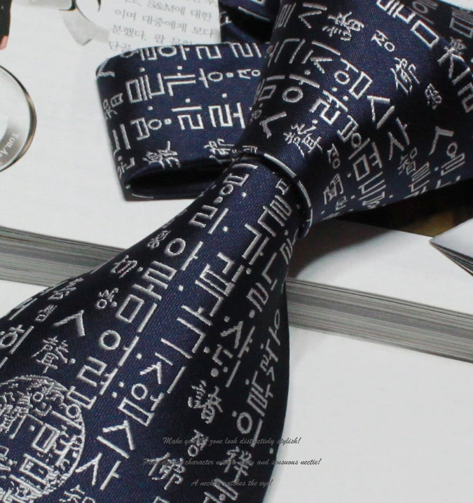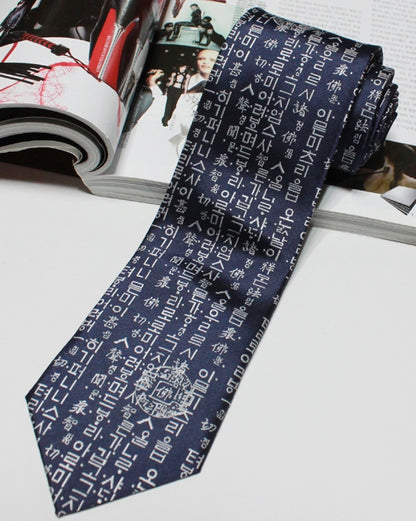Navy Blue Hangul Korean Language Font Patterned Neckties