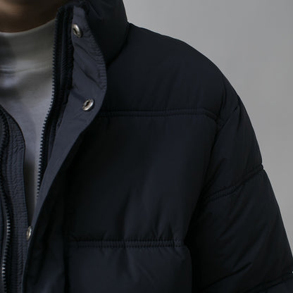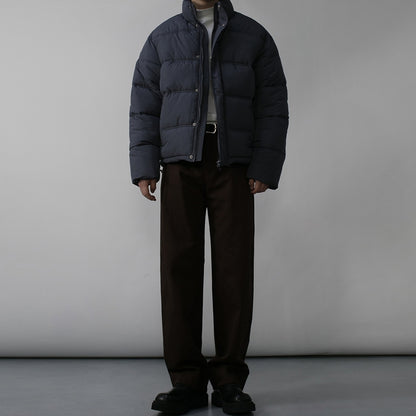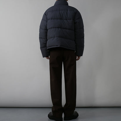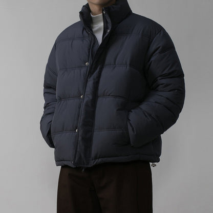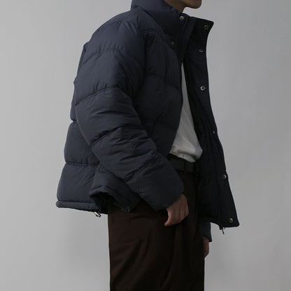Navy Blue Mens Short Puffers Winter Outerwear Outfits Kpop Style Coats Clothing
