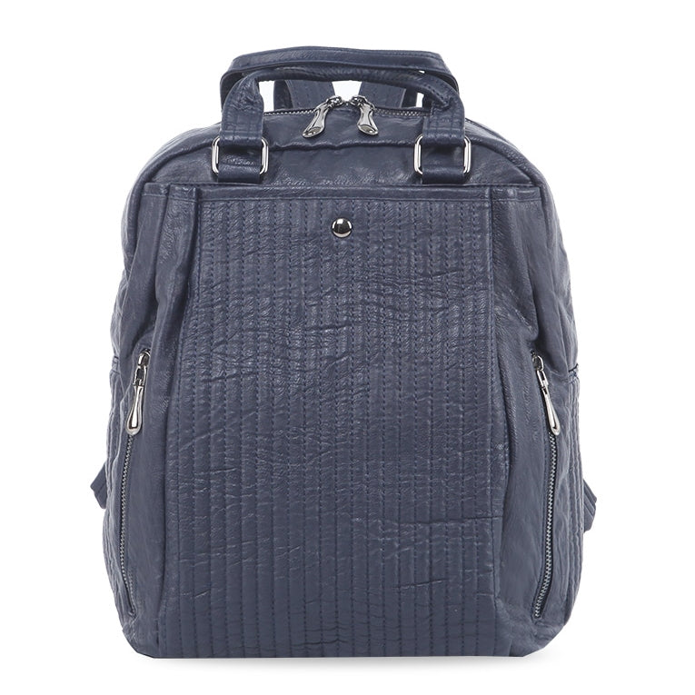 Navy Faux Leather Casual Backpacks Career Women Girls School Bookbags