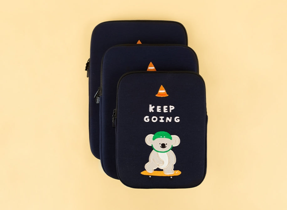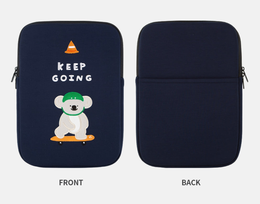 Navyblue Koala Laptop Sleeves iPad 11" 13" 15" inch Cases Protective Covers Purses Skins Handbags Square Cushion Carrying Pouches Designer Artist Embroidery School Collage Office Lightweight Cute Characters