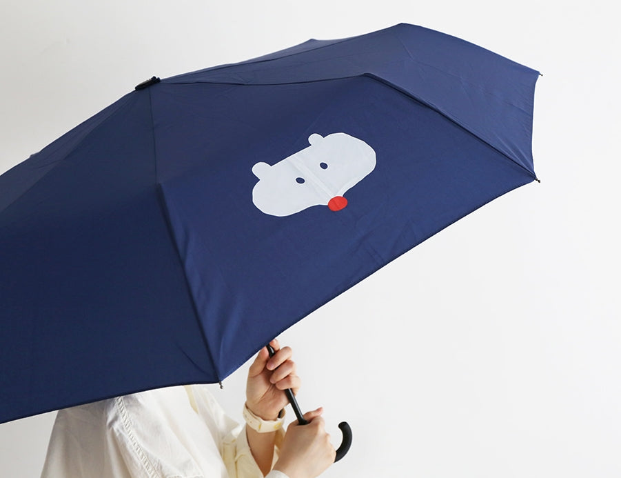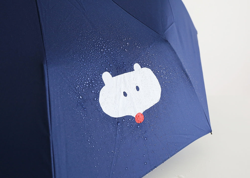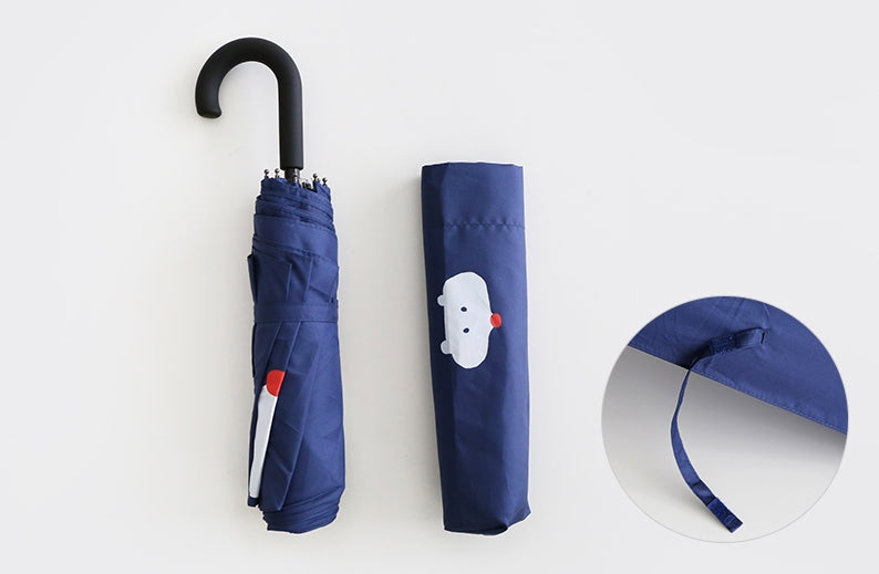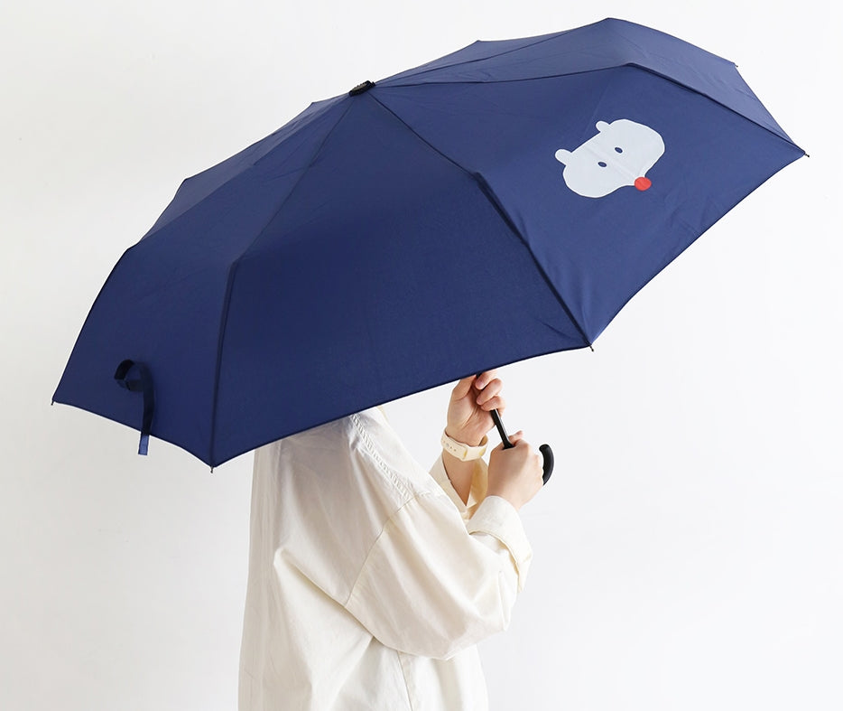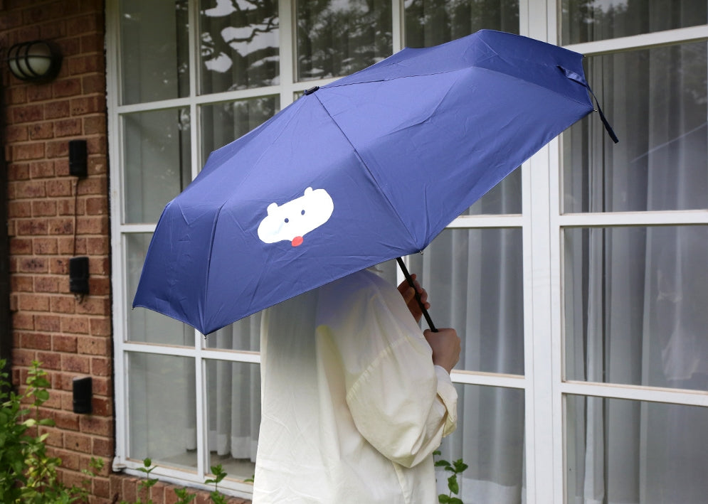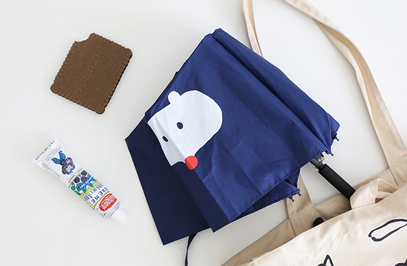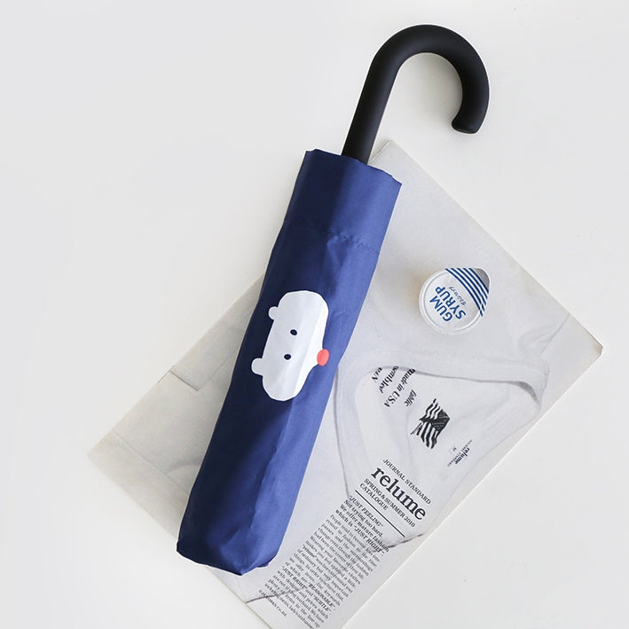 Cute polar bear printed umbrellas in navy blue, 3-folding, strong umbrellas with cover pouch. Pongee material, Waterproof, windproof, compact manual umbrellas.