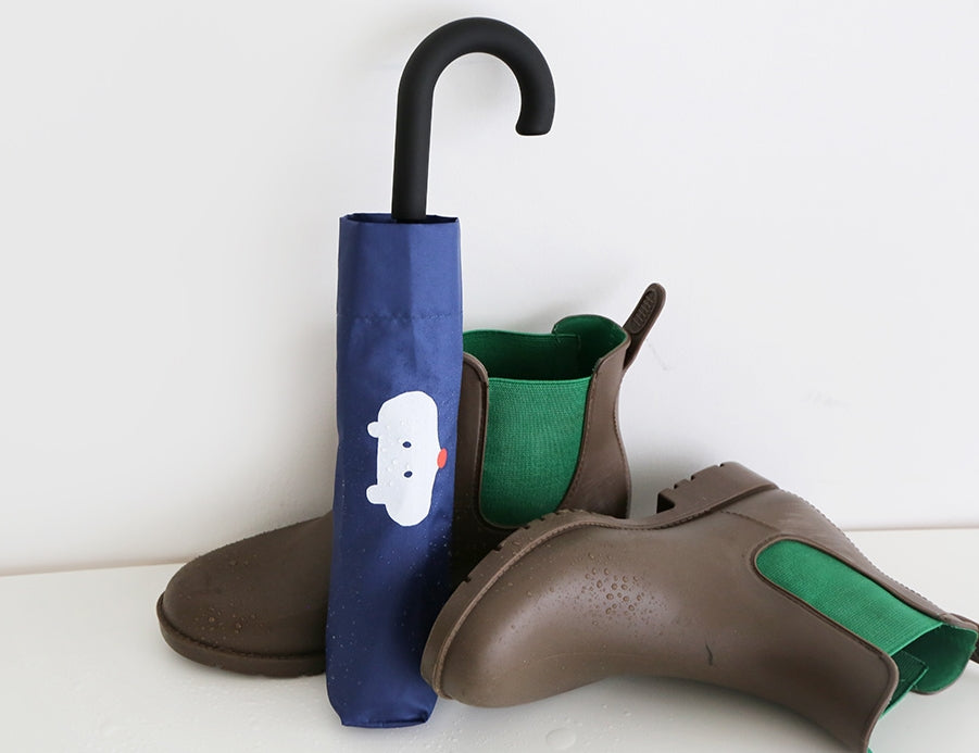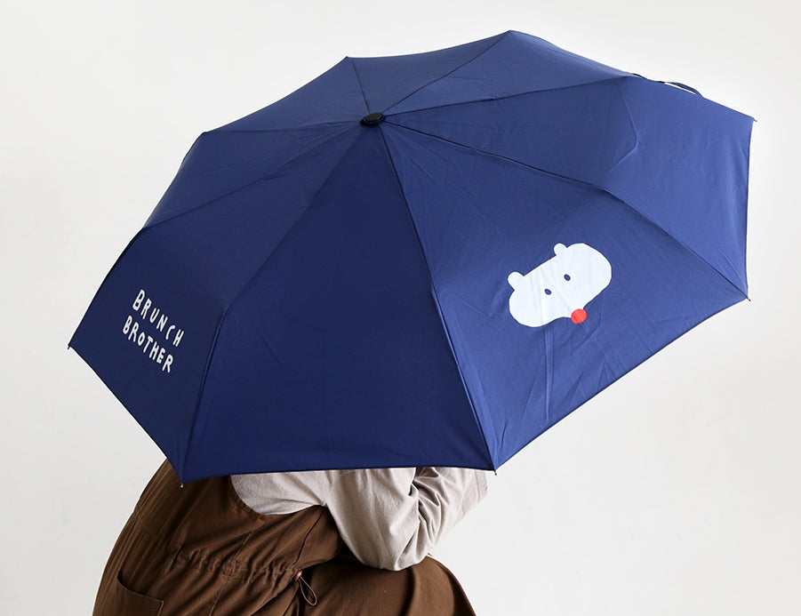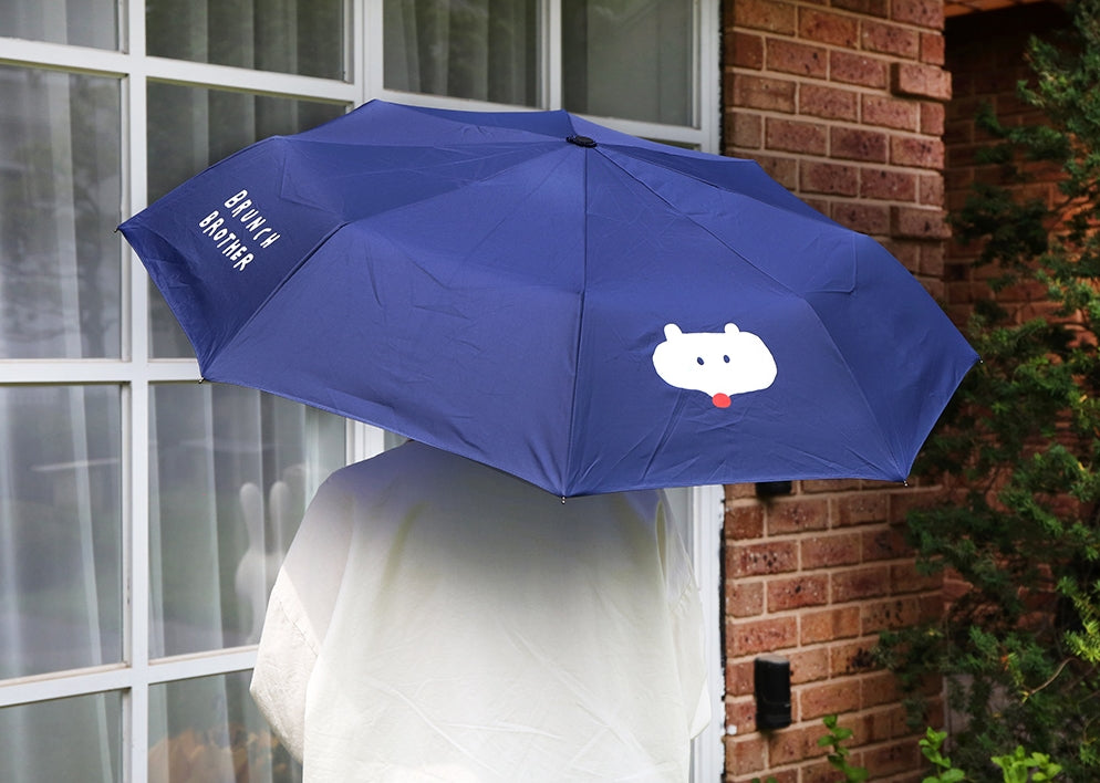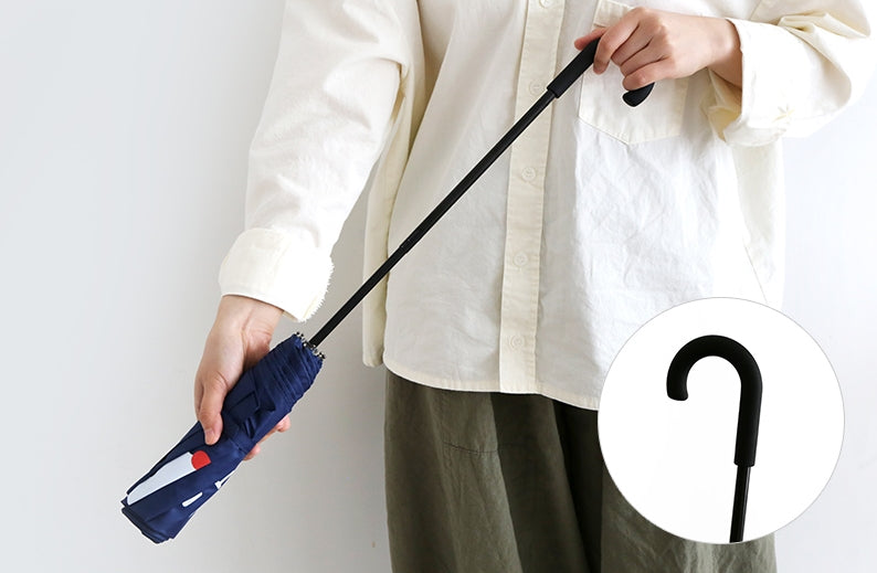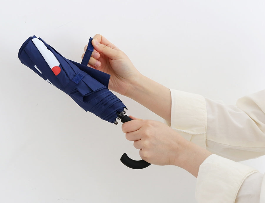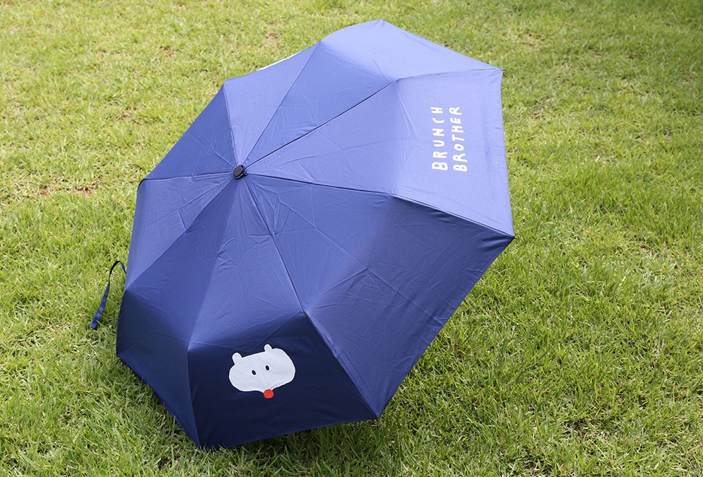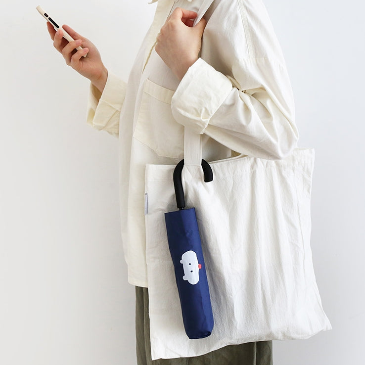 Cute polar bear printed umbrellas in navy blue, 3-folding, strong umbrellas with cover pouch. Pongee material, Waterproof, windproof, compact manual umbrellas.