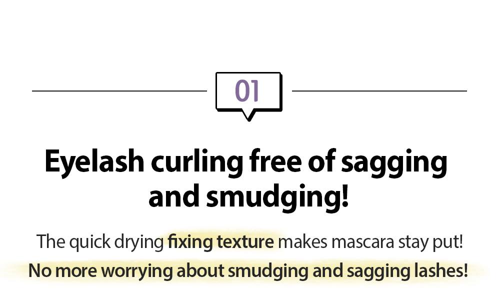 It's a product that curls eyelashes without sagging or smudging. Fast-drying fixation type secures the mascar.