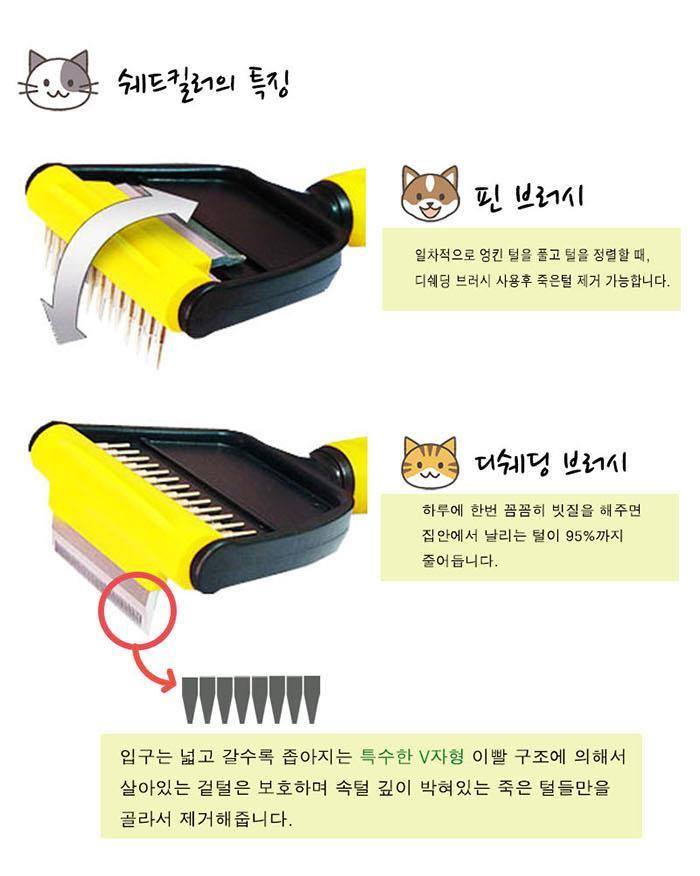 The pin brush can first remove dead hair after using a de-shading brush when untangling and aligning the tangled hair. Mask shading brushes reduce the amount of hair flying around the house by 95 percent once a day. The entrance is wide and narrow with a special V-shaped tooth structure, protecting the living cladding and removing only the deeply strung dead fur.