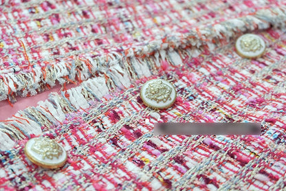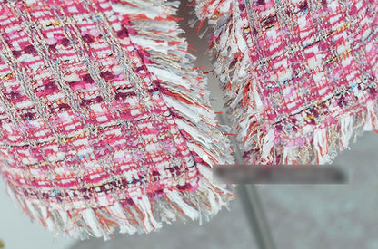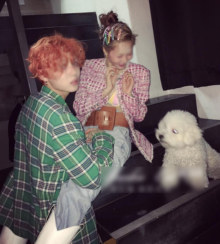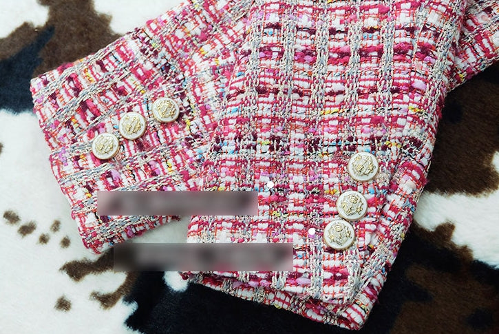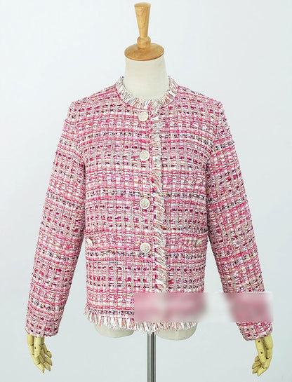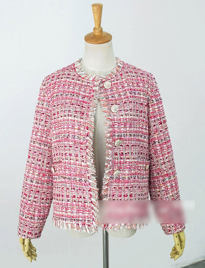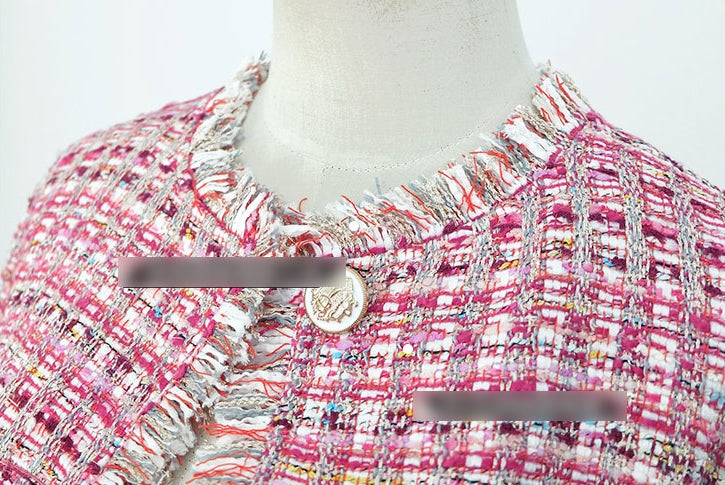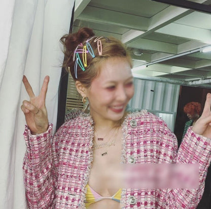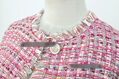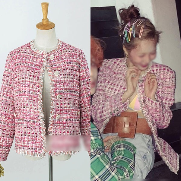 Pink Tweed Jackets Kpop Style Hyuna Celebrity Style Plaids Collarless