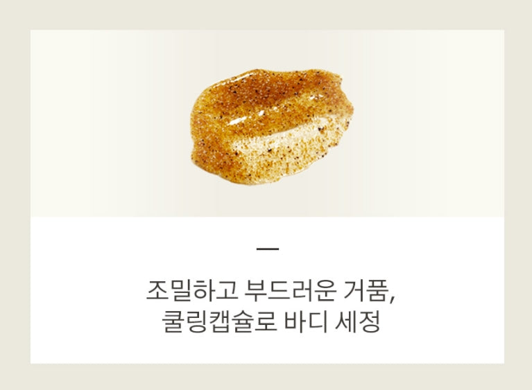 Eucalyptus extract, peppermint extract and menthol ingredient are contained in cooling capsule for skin soothing and purifying.
