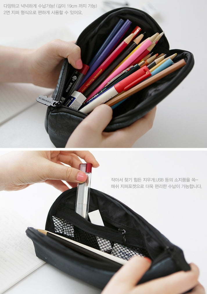 There is a mesh pocket on the inside, so you can organize your stationery and small items without falling apart.