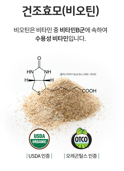 Biotin, an organic dried yeast certified by the U.S. Department of Agriculture.