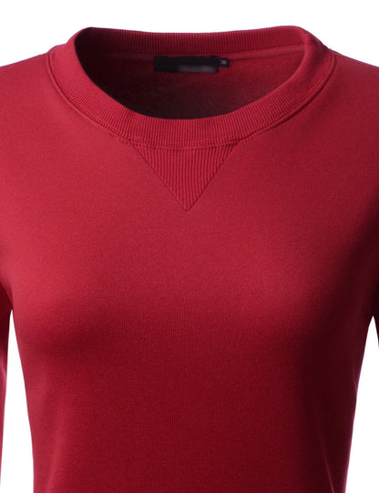 Red Crewneck Slim Pullover Long Sleeved Sweatshirts