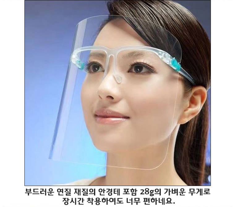 These days, people can live more safely even with a transparent shield because they can't rest assured by wearing only masks. The lightweight 28g, including soft frames, is so comfortable that it can be worn for a long time.