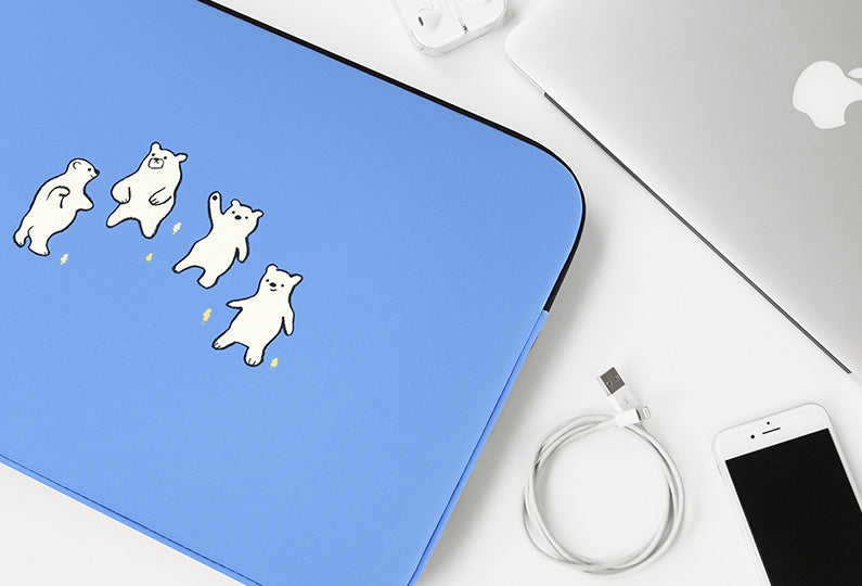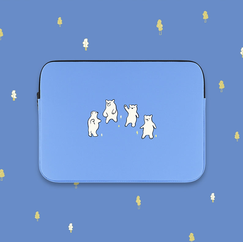 Sky Blue Bear Laptop Sleeves iPad 11" 13" 15"inch Cases Pouches Protective Covers Purses Handbags Square Cushion Designer School Collage Office Lightweight Fashion Cute Gifts