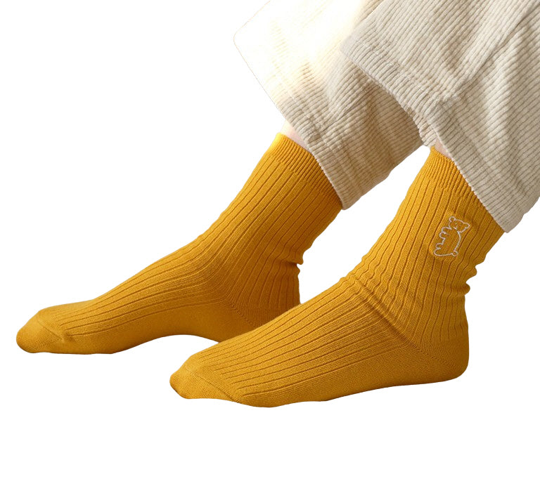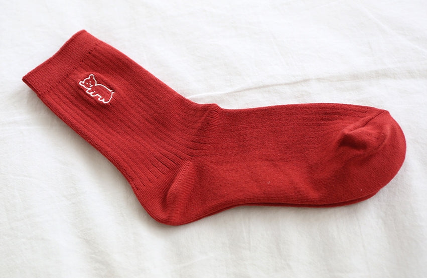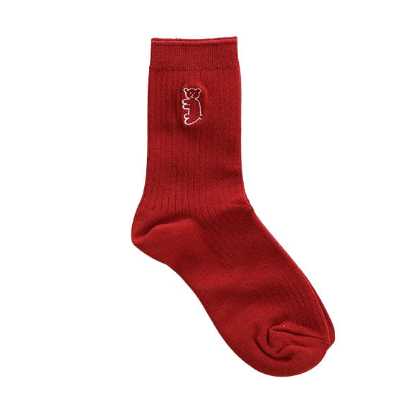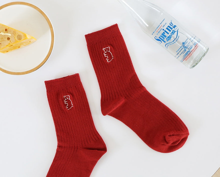 Korean trend socks, made of cotton blend. Fashionable socks for women and men, good for wear in couple. 100% made in Korea, accented teddy bear, solid socks.
