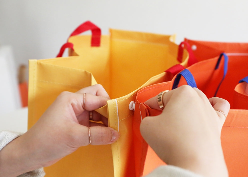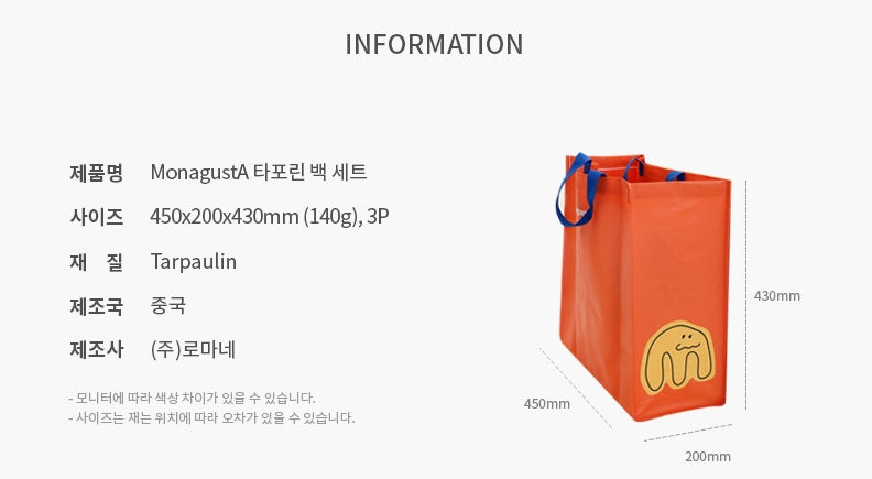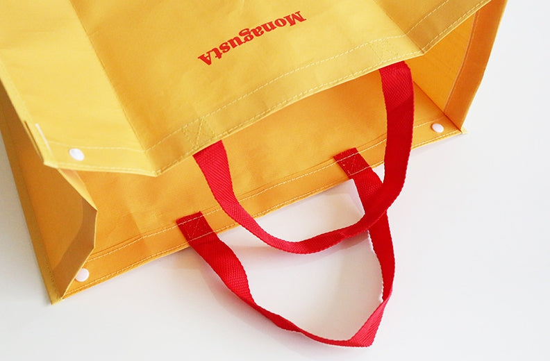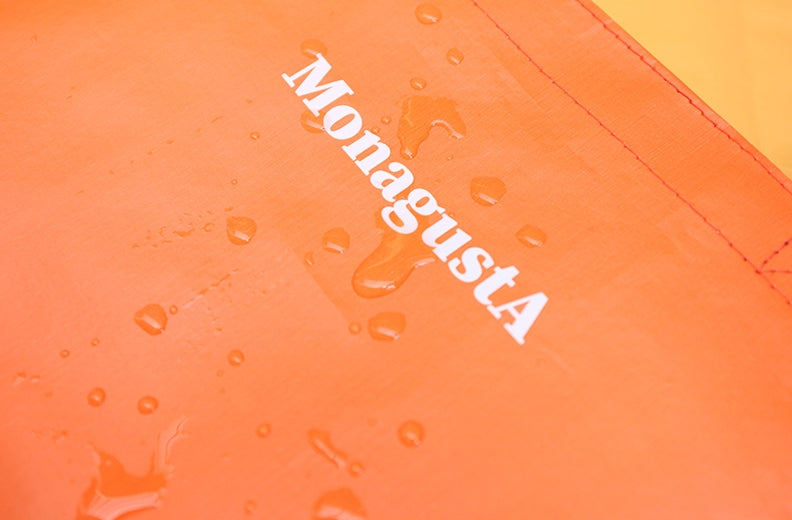 Tarpaulin bag set. A set of three-color Monagusta tarpaulin bags has been released. The tarpaulin bag has 4 snap buttons to connect 3 tarpaulin bags.