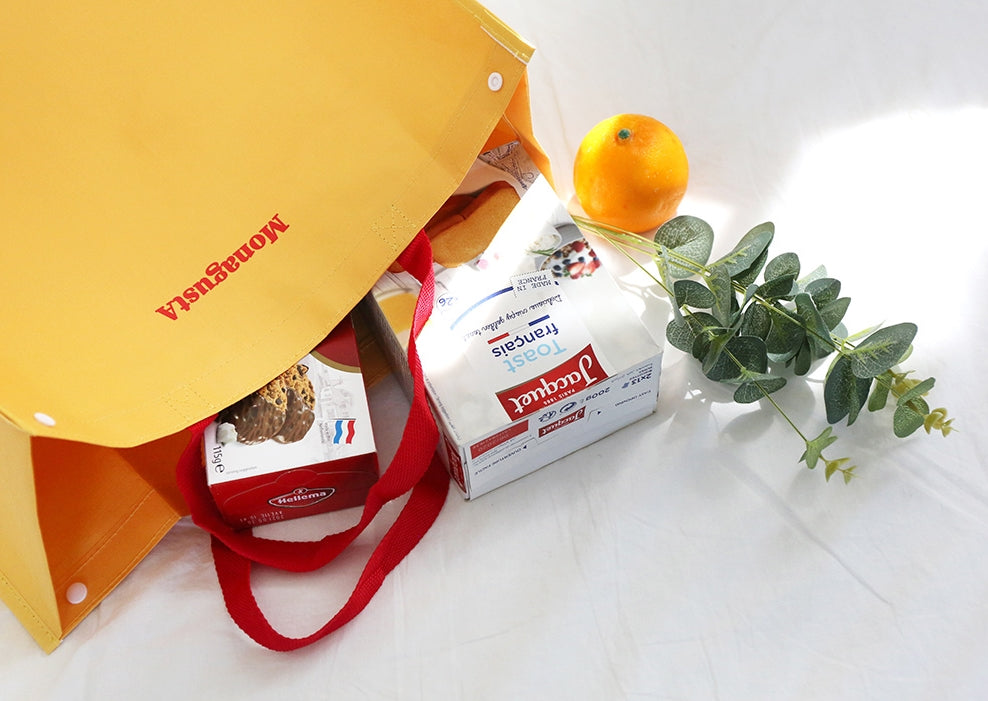 It is a tarpaulin bag with the fresh color of Monagusta and is good for interior effect.