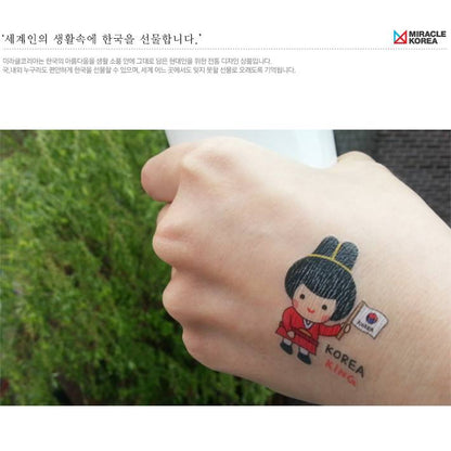 It's a tattoo sticker that can easily express the cute and unique character. Anyone can easily enjoy the patterns of various Korean traditional characters by cutting and pasting the shape you want and polishing it with water.