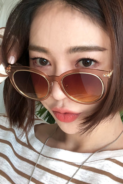 Trendy Beige Gold Sunglasess Korean Womens Fashion Casual Summer Accessories Stylish