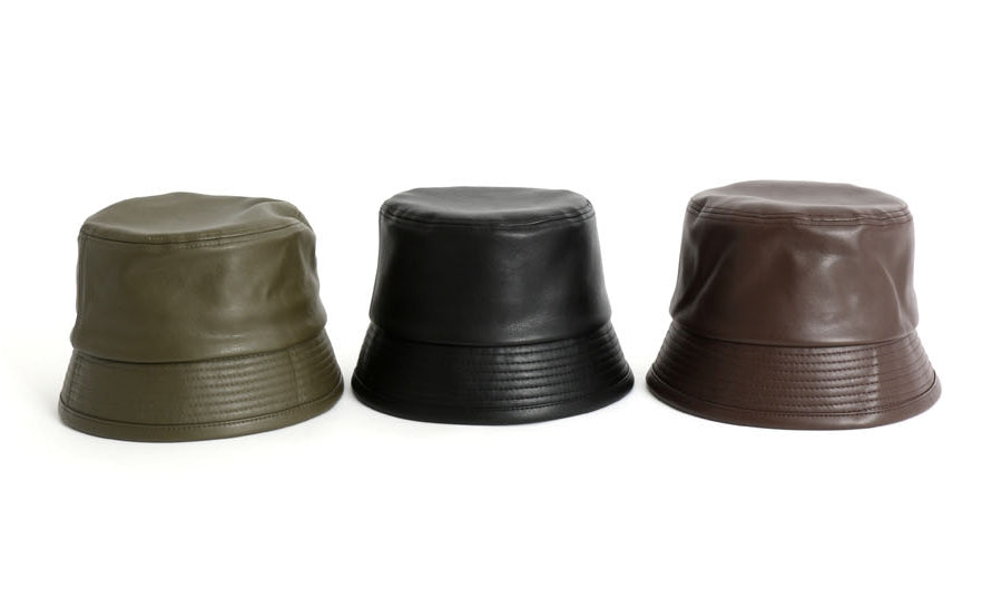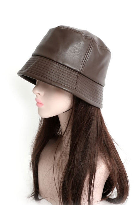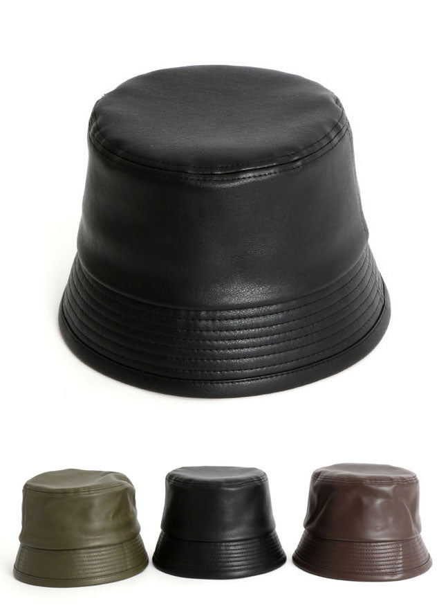 Vintage faux leather bucket hats for men and women. Casual bucket hats for picnic, weekend, travel, school, party. Stylish Korean street fashion accessories.