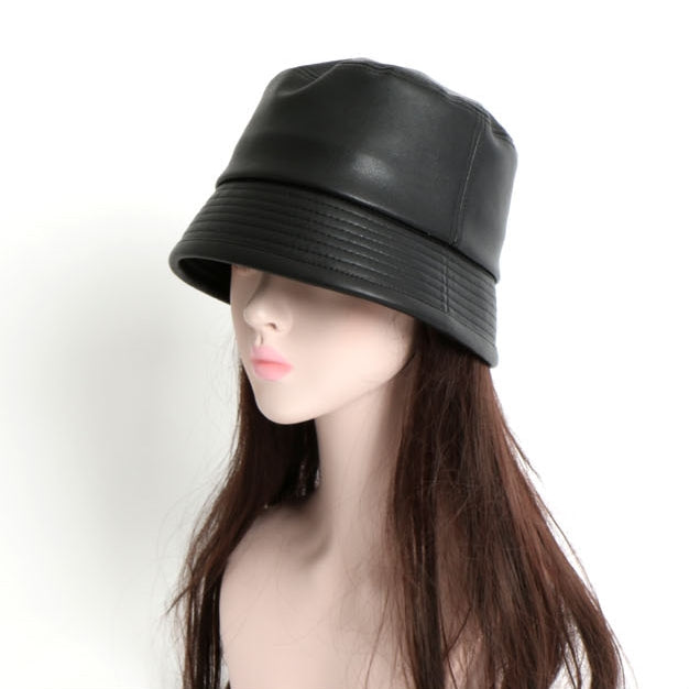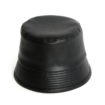 Vintage Faux Leather Bucket Hats Unisex Korean Style Street Accessory