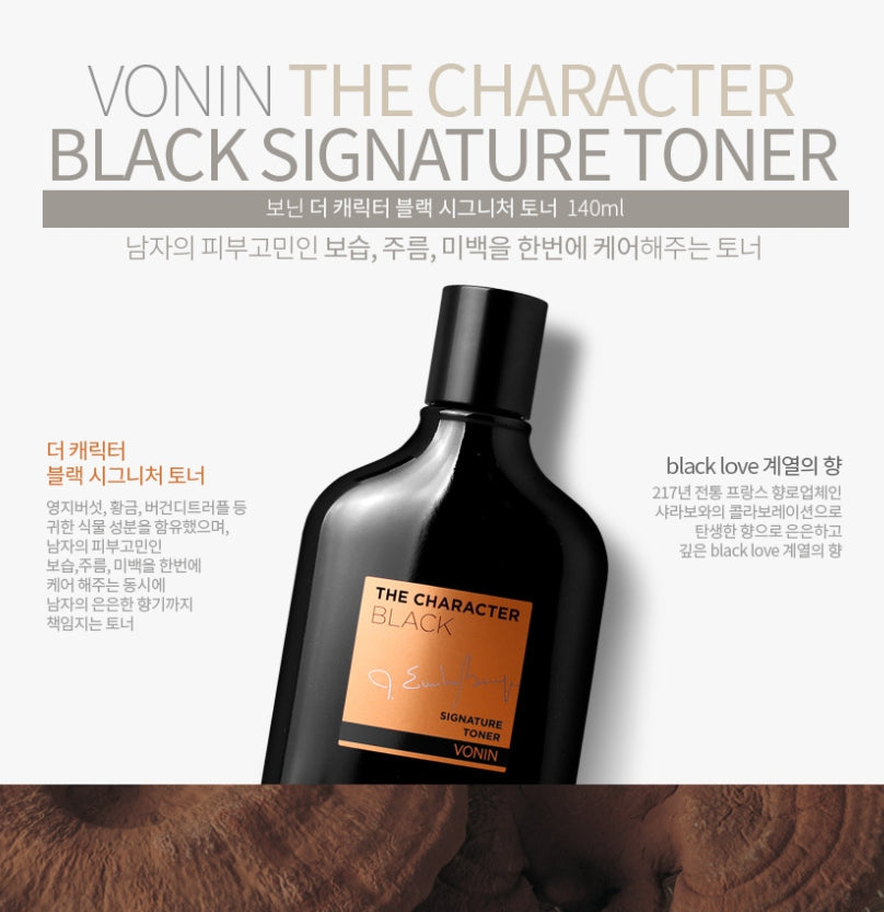 VONIN The Character Black Signature Toner 140ml For Men Homme Skincare Moisture Soothing