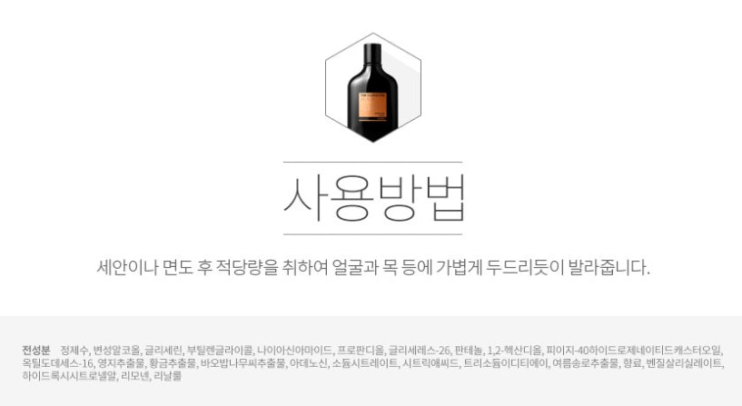 It is a toner that combines precious plant-derived ingredients such as reishi mushroom, gold, and burgundy truffle to take care of men's skin concerns, such as moisture, wrinkles, vitality, and calm, at the same time, while also responsible for men's fragrance.