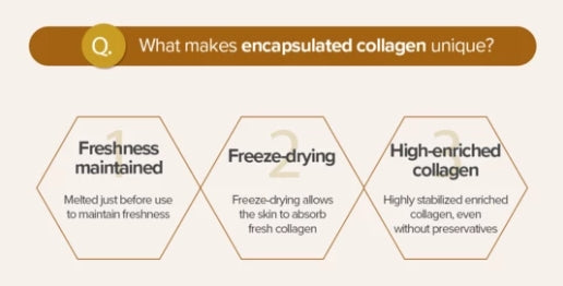 The Freeze-drying technology removes water from frozen collagen to product high-enriched collagen capsules, creating a fresh solution each time you use these capsules for an intensive anti-wrinkle care system with NO preservatives,