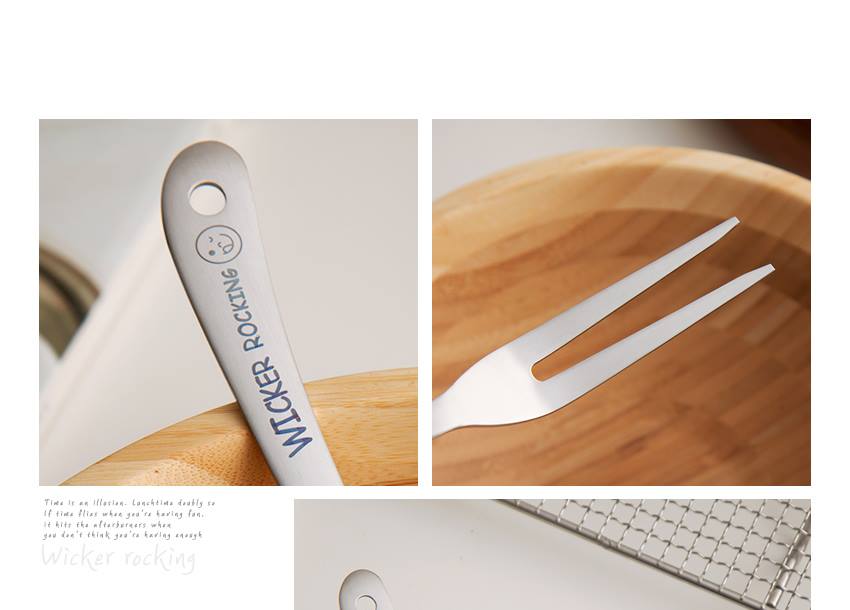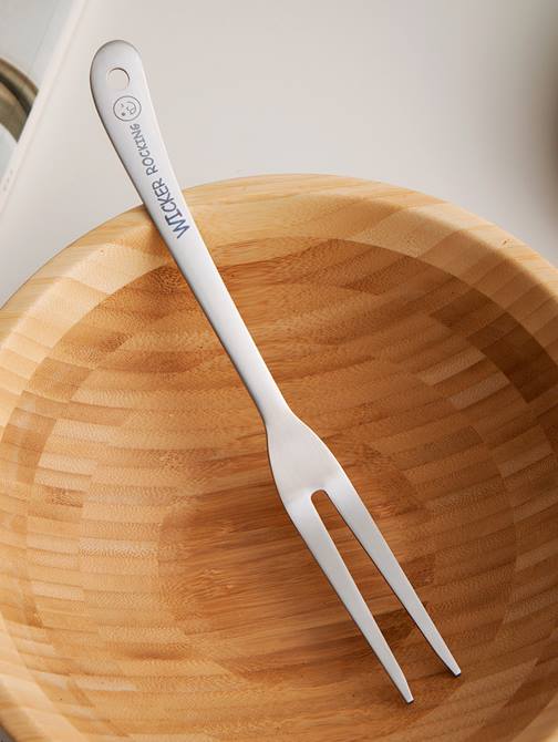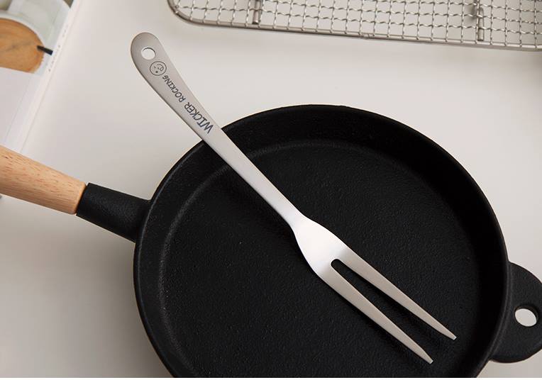 It's made of stainless steel, so it's a hygienic and sturdy fork. The fork is long, so it's good to use when you barbecue in camping.