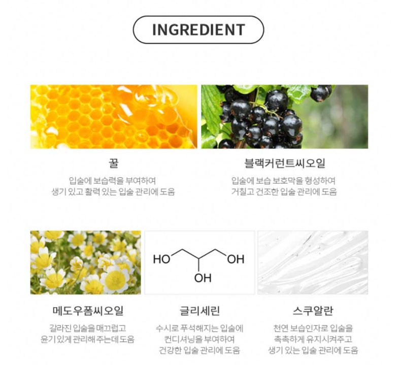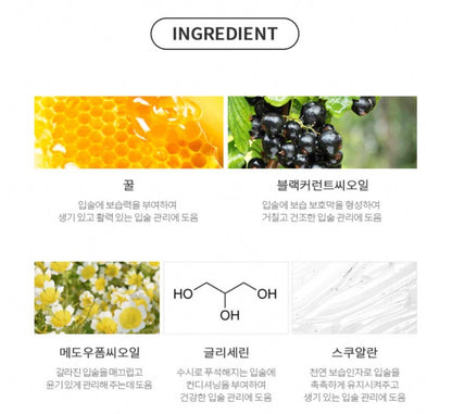Containing honey extract, it delivers a deep nourishment to dry and rough lips, as if applying honey, and smooth lips care with a single touch is possible.