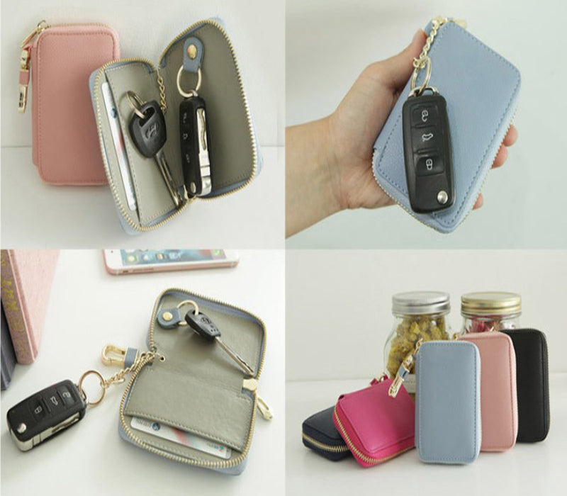 Zipper Genuine Cowhide Leather Smart Keyholder Car New